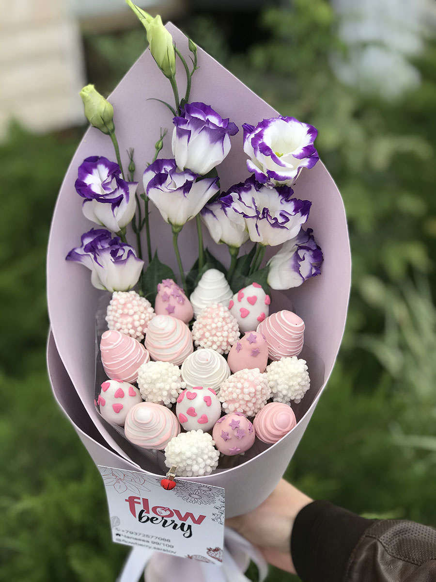 Ягодный букет «Лунная соната» отличается своим необыкновенным сочетанием цветов и нежной упаковкой!
