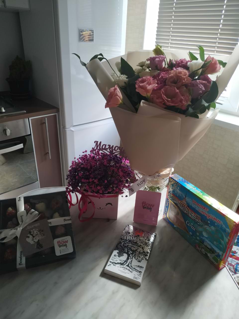 Спасибо огромное за всё!!! Быстрая доставка + качественная консультация по подбору подарка? Желаю вам процветания и успехов в этом вкусном и приятном бизнессе)в такой торжественный день как был у...Спасибо огромное за всё!!! Быстрая доставка + качественная консультация по подбору подарка? Желаю вам процветания и успехов в этом вкусном и приятном бизнессе)в такой торжественный день как был у моей мамочки сегодня от вашейдоставки?? не передаваемые ощущения???Читать полностью