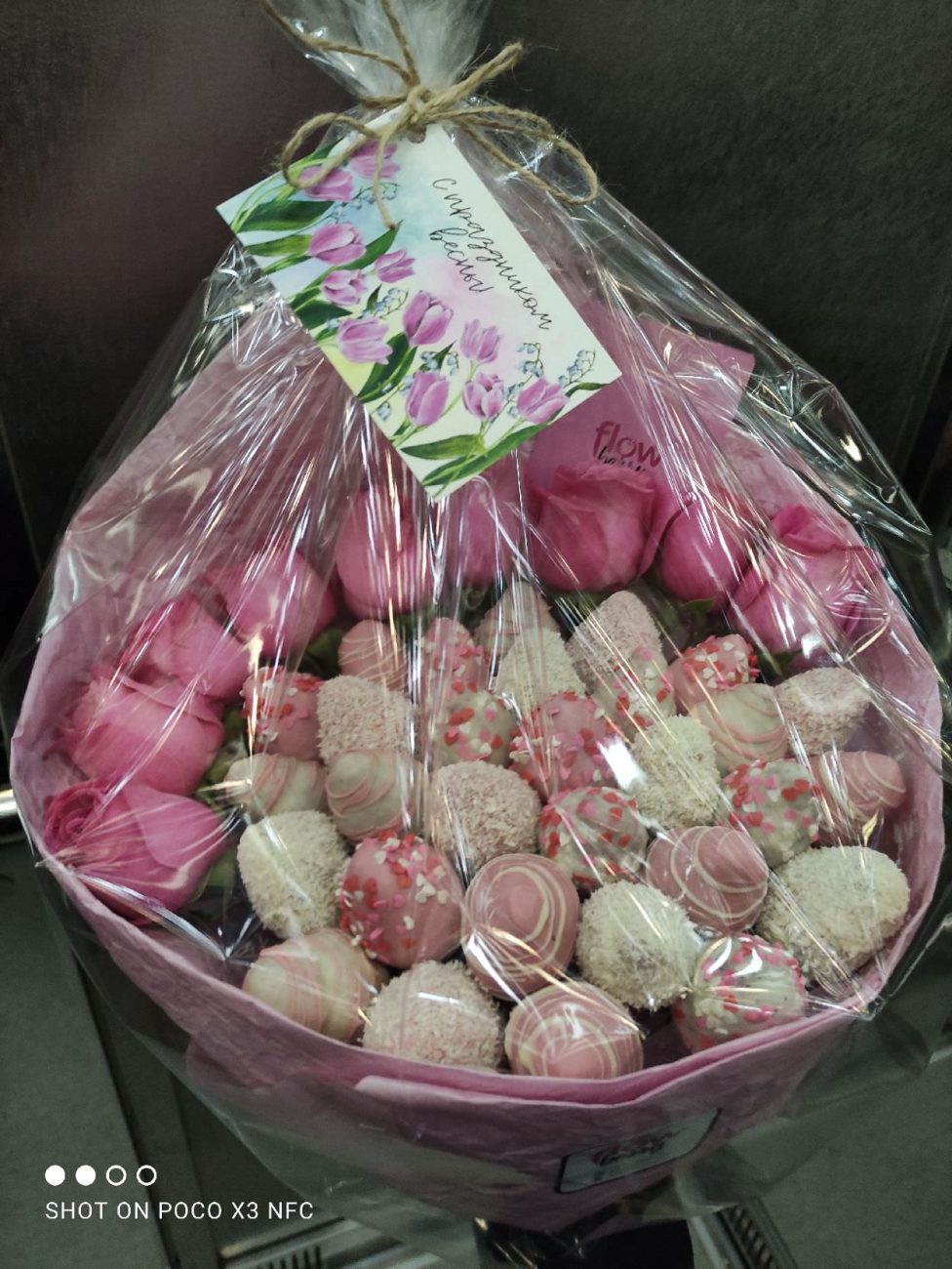 Заказывал доставку привезли вовремя,букет превзошёл все ожидания,клубника была свежая и очень вкусная,так что всем советую)